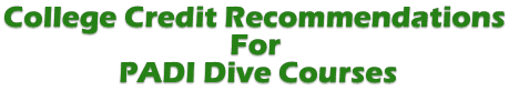 Important Information: Does your employer offer reimbursement for college courses? If so, you may be able to learn to dive or continue your diving education at no cost to you! Check with your employer and ask if they offer a program to pay for college credit courses. By taking your dive training with SDI you will be able to receive the credit and reimbursement you need and not have to deal with enrolling and taking a course through a college or university that will take much longer and be more expensive than necessary. Attention Employers: Why pay more than is necessary for your employees to take SCUBA training? If you are paying for your employees to take courses at local colleges and universities and they are allowed to use this benefit to take SCUBA training, you may be paying too much! You may also be requiring your employees to commit more time than is necessary as well. Our courses typically only take two weekends to complete. Why require your employees to commit to a course that will take them several weeks to complete when they can complete ours in as little as two weekends with some home study. The American Council of Education (ACE) recommends college credit for certain SDI/PADI scuba diver courses. ACE represents all colleges and universities before the U.S. federal government and as such is the unified voice of higher education. ACE evaluates educational courses according to established college-level criteria and recommends college credit for those that measure up to these standards. The ACE credit recommendations for SDI/PADI courses may help you in receiving college credit at an American university or college - even if the courses aren't conducted on a university or college campus. Courses offered through Southeastern Divers qualify. TAKE A